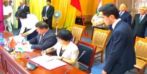 Имзои Созишнома оид ба таъсис додани Донишкадаи Конфутсий дар назди Донишкадаи кӯҳию металлургииТоҷикистон (19 августи 2015с.)